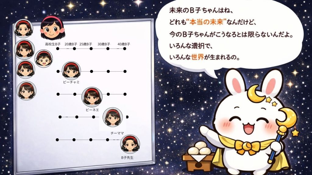 彼女たちは全員、「確かにB子の未来の姿」だけれど、「今のB子が将来こうなる」と決まっているわ